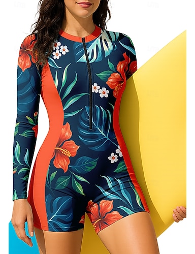 Γυναικεία Μεσαίου Πάχους Προστατευτικά Ολόσωμη προστατευτική μάσκα εξανθήματος Ολόσωμη φόρμα για σέρφινγκ Άνθινο Τροπικό Κουμπώσου με ενσωματωμένο σουτιέν Μποστινό Φερμουάρ Προστασία από τον ήλιο UV