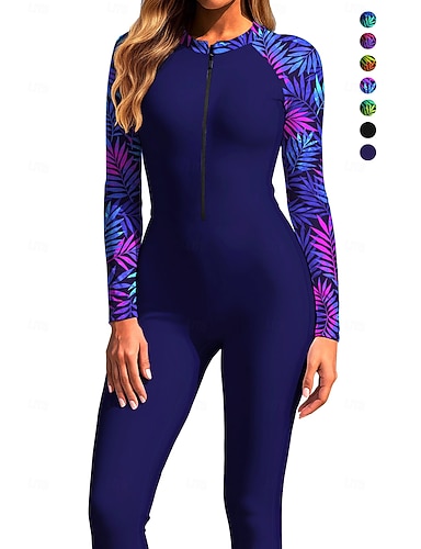 Γυναικεία Κανονικό Προστατευτικά Ολόσωμη προστατευτική μάσκα εξανθήματος Μαγιό Άνθινο Τροπικό με ενσωματωμένο σουτιέν Μποστινό Φερμουάρ Προστασία από τον ήλιο UV Πλήρης Κάλυψη UPF50+
