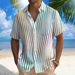 Ανδρικά Γεωμετρικό Ριγέ Χρωματική κλίση Πουκάμισο Καλοκαιρινό πουκάμισο Πουκάμισο με κουμπιά Κοντομάνικο Μόδα Casual ΕΞΩΤΕΡΙΚΟΥ ΧΩΡΟΥ Διακοπές Καθημερινή Ένδυση Καλοκαίρι Άνοιξη Απορρίπτω 3D