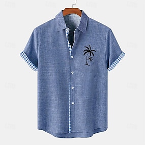 Ανδρικά Πουκάμισο λινό πουκάμισο Πουκάμισο παραλίας Χαβανέζικο πουκάμισο Δέντρο καρύδας ΕΞΩΤΕΡΙΚΟΥ ΧΩΡΟΥ Διακοπές Βαθυγάλαζο Θαλασσί Πράσινο του τριφυλλιού Χακί Κοντομάνικο Απορρίπτω Καλοκαίρι Ρούχα