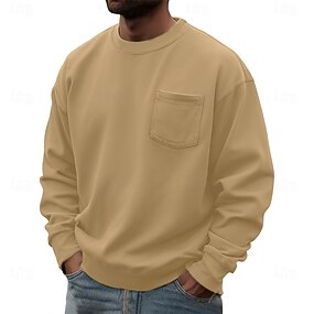 Ανδρικά Πουλόβερ Πράσινο Χακί Ρουμπίνι Βαθυγάλαζο Θαλασσί Βυσσινί Στρογγυλή Ψηλή Λαιμόκοψη Σκέτο Τσέπη Αθλήματα & Ύπαιθρος Καθημερινά Αργίες Πολυεστέρας Κομψό στυλ street Βασικό Καθημερινό