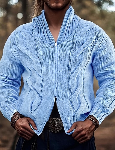 Ανδρικά Πουλόβερ ζακέτα Ογκώδης ζακέτα Cropped πουλόβερ Καλώδιο Πλέκω Κανονικό Φερμουάρ Κουμπί Συνδυασμός Χρωμάτων Όρθιος Γιακάς Βίντατζ Θερμαντικά Causal Καθημερινά Ρούχα Ρούχα Μανίκια Ρεγκλάν