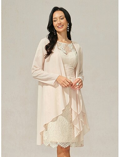 Γυναικεία Φόρεμα μέχρι το γόνατο Φόρεμα με πολλά επίπεδα Που καλύπτει Κομψό Επίσημο Επισκέπτης γάμου Κοκτέιλ Πάρτι Κανονικό Μακρυμάνικο Στρογγυλή Ψηλή Λαιμόκοψη Ανθισμένο Ροζ Πράσινο του τριφυλλιού