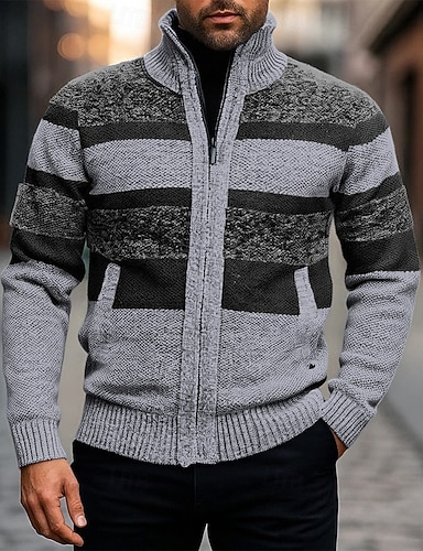 Ανδρικά Πουλόβερ Πουλόβερ ζακέτα Ζακέτα Πουλόβερ με φερμουάρ Cropped πουλόβερ Κοτλέ Πλέκω Κανονικό Πλεκτό Σκέτο Όρθιος Γιακάς Θερμαντικά Σύγχρονη Σύγχρονη Καθημερινά Ρούχα Εξόδου Ρούχα Χειμώνας