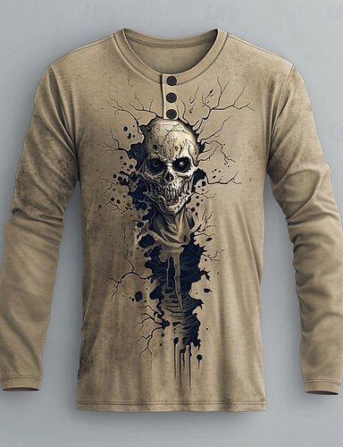 Ανδρικά Γραφική Ζόμπι Πουκάμισο Henley Μακρυμάνικο Μοντέρνα χαριτωμένο στυλ Καθημερινά Causal Αργίες Εξόδου Άνοιξη Φθινόπωρο Άνοιξη & Χειμώνας Χακί Χένλι Μπλουζάκι Henley