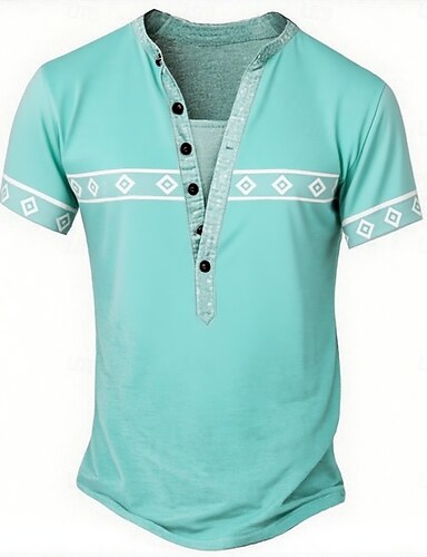 Ανδρικά Φυλής Etnic Μπλουζάκι Πουκάμισο Henley Κοντομάνικα Κοντομάνικο Υψηλής Ποιότητας Βασικό Etnic ΕΞΩΤΕΡΙΚΟΥ ΧΩΡΟΥ Causal Καθημερινά Καλοκαίρι Πράσινο Ανοικτό Μπλε Απαλό Χένλι Μπλουζάκι Henley