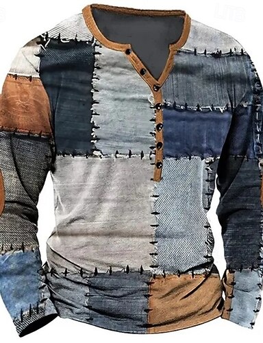 Ανδρικά Μοτίβο Faux Patchwork Μπλουζάκι Πουκάμισο Henley Κοντομάνικα Μακρυμάνικο Βίντατζ Υψηλής Ποιότητας Στυλάτο Causal Καθημερινά ΕΞΩΤΕΡΙΚΟΥ ΧΩΡΟΥ Ανοιξη καλοκαίρι Όλες οι εποχές Θαλασσί Χένλι