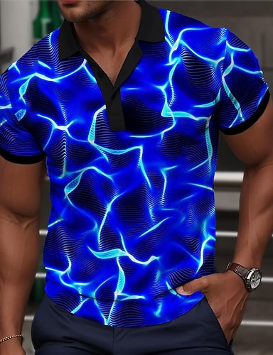 Ανδρικά Γεωμετρικό Μπλουζάκια πόλο Πουκάμισο γκολφ Κοντομάνικο Μπλουζάκια πόλο Πουκάμισα με γιακά Business Casual Ρούχα διακοπών Επίσημο ένδυμα Ρούχα Φεστιβάλ Κουμπιά 3D εκτύπωση Καλοκαίρι Άνοιξη