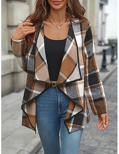 Γυναικεία Casual Jacket Άνετο Αναπνέει Στάμπα Ανοικτό Μπροστά Καθημερινό Καρό Διακοπές Δρόμος Causal Καθημερινά Ρούχα Ανοικτό Μπροστά Κανονικό Απορρίπτω Κανονικό Μακρυμάνικο Εξωτερικά ενδύματα