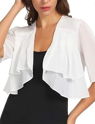 γυναικείο περιτύλιγμα μπολερό καθαρή βασική αντηλιακή προστασία μισό μανίκι σιφόν γάμου με καθαρό χρώμα για γάμο όλες τις εποχές