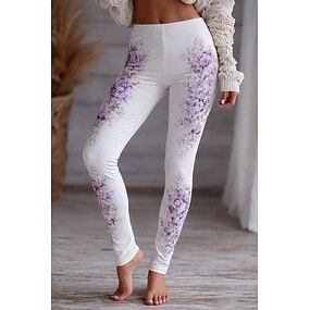 Γυναικεία Κολάν Άνετα κολάν Διακοπές Βίντατζ Εθνοτικό στυλ Πλήρες μήκος Ψηλή Μέση Φλοράλ Εκτύπωση Άνετο Ελαστικό Causal Καθημερινά Διακοπές Θαλασσί Λευκό Ρουμπίνι Βυσσινί Άνοιξη Φθινόπωρο