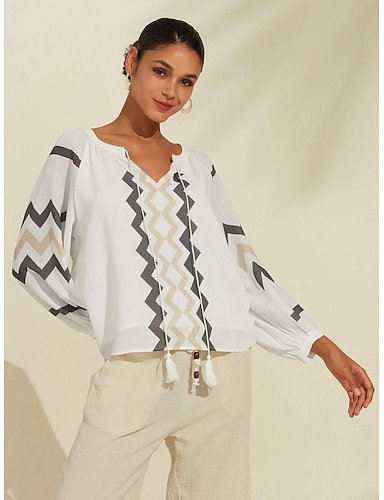 γεωμετρικό φουσκωτό μανίκι v τοπ λαιμό