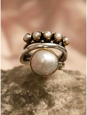 Γυναικείο vintage δαχτυλίδι με μαργαριτάρια - μποέμικο στυλ, ιδανικό για casual και θαλάσσιες εμφανίσεις