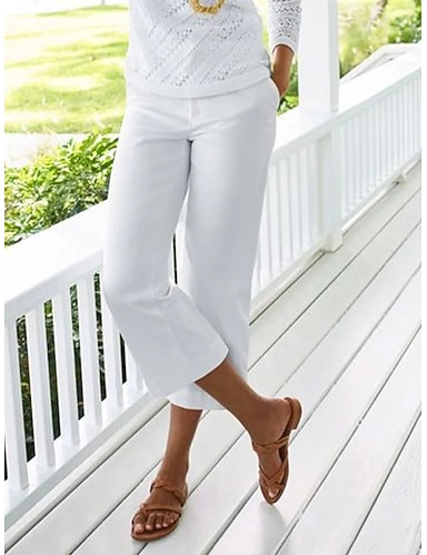 Γυναικεία Βαμβακερό λινό παντελόνι Παντελόνια Καθημερινά Μήκος μοσχάρι Σκέτο Τσέπη Ικανότητα να αναπνέει Άνετο Ανελαστικό Εξόδου Σαββατοκύριακο Μαύρο Λευκό Κίτρινο Μπλε Ανοιξη καλοκαίρι Κανονικό