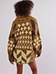 Γυναικεία Χειμερινό παλτό Άνετο Αναπνέει Τσέπη Στάμπα Βίντατζ Χνουδωτό Καθημερινό Γεωμετρικό Διακοπές Δρόμος Καθημερινά Ρούχα Εξόδου Μονόπετο Κανονικό Απορρίπτω Κανονικό Μακρυμάνικο Εξωτερικά ενδύματα