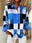 Γυναικείο Πουκάμισο Μακρύ Μανίκι Με Κουμπιά Μπλούζα 3D Εκτύπωση Βασική Χρώματος Μπλοκ Εκτύπωση Κουμπιών Κανονικά Μπλουζάκια Γιακάς Καθημερινά Μπλε Άνοιξη  Φθινόπωρο