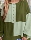 Γυναικεία Ενεργό Μοντέρνα Μπλούζα Σετ παντελονιών Μακρυμάνικο Κολάρο Πουκαμίσου Συνδυασμός Χρωμάτων Κουρελού Διακοπές Καθημερινά Ρούχα Πράσινο Χακί Βαθυγάλαζο Φθινόπωρο Κανονικό