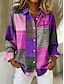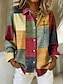 Γυναικεία Πουκάμισο Γραφική Καρό Συνδυασμός Χρωμάτων Βίντατζ Καθημερινά Στυλάτο Μακρυμάνικο Κολάρο Πουκαμίσου Κανονικά μπλουζάκια Καθημερινά Κουρελού Κουμπιά Στάμπα