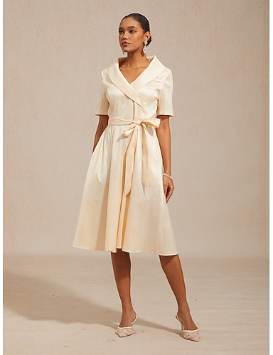 Γυναικεία Μίντι φόρεμα Φόρεμα σε ευθεία γραμμή Κομψό Καθημερινά Επισκέπτης γάμου Κοκτέιλ Πάρτι γραβάτα μπροστά Τσέπη Κανονικό Συμπαγές Χρώμα Κοντομάνικο Λαιμόκοψη V Κολάρο Πουκαμίσου Μπεζ