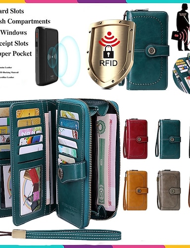 γυναικείο πορτοφόλι από ψεύτικο δέρμα RFID – συμπλέκτης με φερμουάρ μεγάλης χωρητικότητας με 24 υποδοχές για κάρτες και λουράκι καρπού