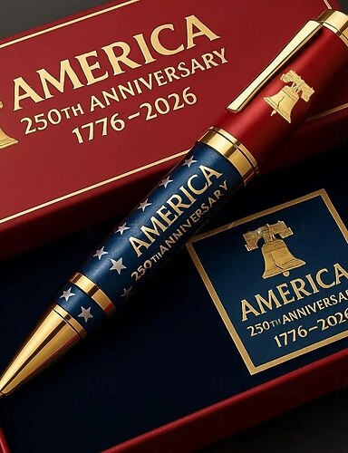 Αναμνηστικό στυλό πατριωτικό δώρο για την 250ή επέτειο των ΗΠΑ, περιορισμένη έκδοση 1776-2026, χρυσή διακόσμηση με σχέδιο αμερικανικής σημαίας, πολυτελές συλλεκτικό κουτί δώρου