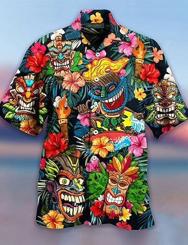 Ανδρικά Κινούμενα σχέδια Μάσκα Τροπικά φυτά Χαβανέζικο πουκάμισο Πουκάμισο Camp Πουκάμισο Aloha Κοντομάνικο Πουκάμισο Απορρίπτω Μοντέρνα Χαβανέζα Υψηλής Ποιότητας Causal Καθημερινά ΕΞΩΤΕΡΙΚΟΥ ΧΩΡΟΥ