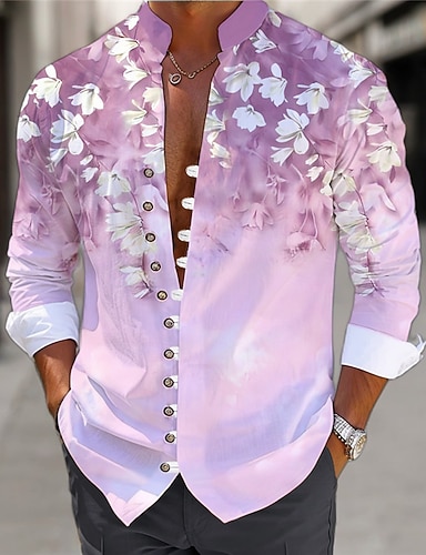 Ανδρικά Φλοράλ Πουκάμισο Πουκάμισο λινό Πουκάμισο Aloha Μακρυμάνικο Καθημερινό Καθημερινά Ρούχα Εξόδου Σαββατοκύριακο Άνοιξη Όρθιος γιακάς Στάμπα Κουμπί-Κάτω Θαλασσί Βυσσινί Πράσινο του τριφυλλιού