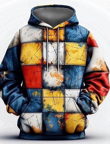 Ανδρικά Καρό / Τετραγωνισμένο Με Κουκούλα Πουλόβερ Μοντέρνα Απίθανο Καθημερινά Μακρυμάνικο Στρογγυλή Ψηλή Λαιμόκοψη Αργίες Εξόδου Streetwear Ουράνιο Τόξο Κορδόνι Φθινόπωρο Χειμώνας Σχεδιαστής Τ M L