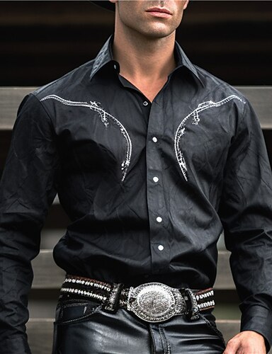 Ανδρικά Cowboy Πουκάμισο Δυτικό πουκάμισο Πουκάμισο καουμπόη Μακρυμάνικο δυτικό στυλ ΕΞΩΤΕΡΙΚΟΥ ΧΩΡΟΥ Δρόμος Καθημερινά Φθινόπωρο & Χειμώνας Απορρίπτω Κουμπιά Στάμπα Μαύρο Καφέ