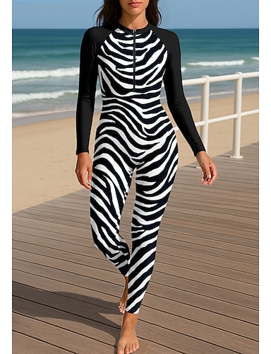 Γυναικεία Rash Guard Dive Skin κοστούμι Μαγιό Σετ μαγιό Αφηρημένο Γεωμετρία Κουμπώσου Αφαιρούμενη επένδυση Μποστινό Φερμουάρ Προστασία από τον ήλιο UV UPF50+ Πολύ Ελαφρύ (UL) Μακρυμάνικο