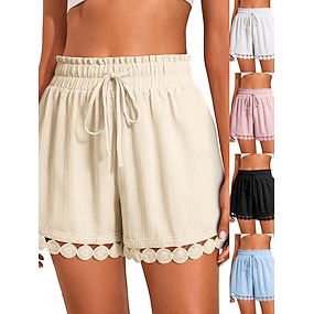 Γυναικεία κινέζικα Σορτσάκια Καλοκαιρινό σορτς Διακοπές Μοντέρνα Κομψό στυλ street σύντομο Ψηλή Μέση Σκέτο Κορδόνι Δαντέλα Ελαστική μέση Άνεση Ικανότητα να αναπνέει Άνετο Ανελαστικό Μικροελαστικό