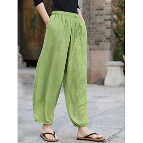 Γυναικεία Λινό από ψεύτικο βαμβάκι Αθλητικές Φόρμες κινέζικα Διακοπές Μοντέρνα Κομψό στυλ street Μήκος γόνατος Ψηλή Μέση Σκέτο Τσέπη Ελαστική ζώνη μέσης Άνετα Moale Άνετο Ελαστικό