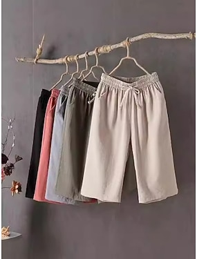 Γυναικεία Κάπρι παντελόνια Λινό από ψεύτικο βαμβάκι Καλοκαιρινό σορτς Διακοπές Βασικό Μήκος μοσχάρι Μεσαία Μέση Συμπαγές Χρώμα Σκέτο Αναπνέει Ανελαστικό Διακοπές Επίσημο Δρόμος
