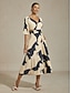 γυναικείο μάξι φόρεμα πορτοκαλί σατέν χαλαρή εφαρμογή μανίκι 3/4 με V λαιμόκοψη γιακά φλοράλ χαβανέζικο τύπωμα κομψό διακοπές αργία casual καθημερινό άνοιξη καλοκαίρι