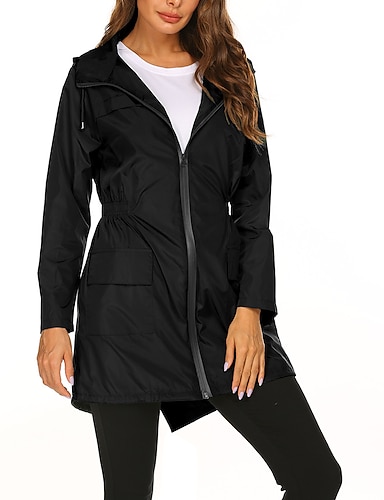γυναικείο μπουφάν βροχής αδιάβροχο μπουφάν πεζοπορίας αδιάβροχο αντιανεμικό χειμώνα υπαίθριο γρήγορο στεγνό ελαφρύ αναπνεύσιμο εξωτερικό ρούχο hoodie parka trench coat κάμπινγκ κυνήγι ψάρεμα ναυτικό πράσινο σκούρο
