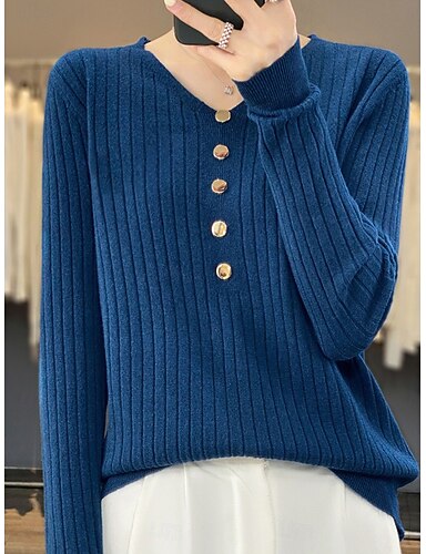 Γυναικεία Πουλόβερ πουλόβερ Στυλάτο Καθημερινό Μαλακή Συμπαγές Χρώμα Κοτλέ Λαιμόκοψη V Κουμπιά Μακρυμάνικο Κανονικά μπλουζάκια Πλέκω ΕΞΩΤΕΡΙΚΟΥ ΧΩΡΟΥ Καθημερινά Εξόδου Μαύρο Λευκό Φθινόπωρο Χειμώνας