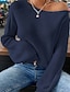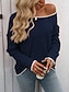 Γυναικεία Πουλόβερ Στυλάτο Γραφική ογκώδης Ένας Ώμος Χαμόγελο Ώμοι Έξω Ριγέ Μακρυμάνικο Μακριές μπλούζες Πλέκω Δουλειά Καθημερινά Βαθυγάλαζο Φθινόπωρο Χειμώνας