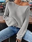 Γυναικεία Πουλόβερ Κομψό στυλ street Καθημερινό Συμπαγές Χρώμα Ώμοι Έξω Πλεκτό Μακρυμάνικο Κανονικά μπλουζάκια Πλέκω Καθημερινά Αργίες Εξόδου Μαύρο Λευκό Φθινόπωρο Χειμώνας