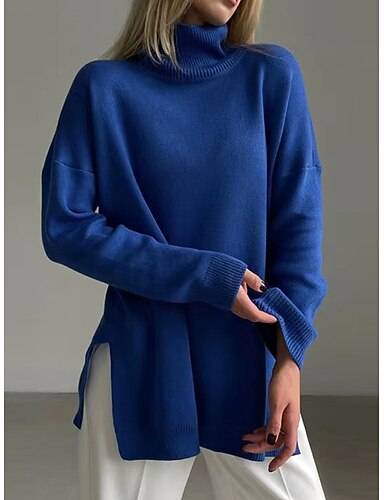 Γυναικεία Πουλόβερ Πουλόβερ πουλόβερ Καθημερινό Μαλακή Συμπαγές Χρώμα Κοτλέ Στρογγυλή Ψηλή Λαιμόκοψη Πλεκτό Μακρυμάνικο Κανονικά μπλουζάκια Πλέκω ΕΞΩΤΕΡΙΚΟΥ ΧΩΡΟΥ Καθημερινά Σαββατοκύριακο