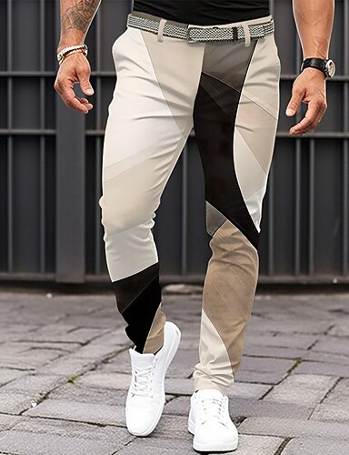 έγχρωμο μπλοκ γεωμετρία επαγγελματικό casual ανδρικό επαγγελματικό 3d printed φόρεμα παντελόνι ίσιο μπροστινό ίσιο πόδι χαλαρή εφαρμογή πολυεστερικό καλοκαιρινό παντελόνι υπαίθριος δρόμος ενδυμασία