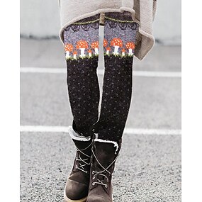 Γυναικεία Κολάν Άνετα κολάν Διακοπές Καθημερινό Πλήρες μήκος Ψηλή Μέση Γραφική Εκτύπωση Διατηρείτε Ζεστό Άνετο Ελαστικό Διακοπές Causal Καθημερινά Μαύρο Φθινόπωρο Χειμώνας Στενή εφαρμογή