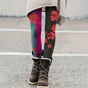 Γυναικεία Παντελόνια Κολάν Άνετα κολάν Κομψό στυλ street Καθημερινό Πλήρες μήκος Ψηλή Μέση Φλοράλ Ελαστική μέση Στάμπα Ικανότητα να αναπνέει Άνετο Ελαστικό Διακοπές Δρόμος Καθημερινά Ρούχα Ρουμπίνι