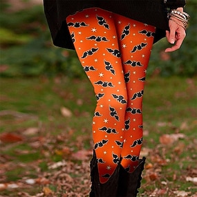 Γυναικεία κινέζικα Κολάν Άνετα κολάν Διακοπές Καθημερινό Πλήρες μήκος Ψηλή ΜέσηPantsHalloween Νυχτερίδα Εκτύπωση Διατηρείτε Ζεστό Άνετο Ελαστικό Διακοπές Causal Καθημερινά Πορτοκαλί Φθινόπωρο Χειμώνας