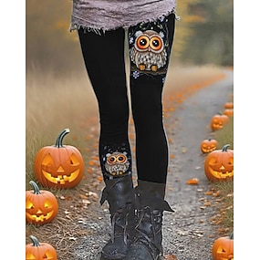 Γυναικεία Παντελόνια Κολάν Άνετα κολάν Κομψό στυλ street Καθημερινό Πλήρες μήκος Ψηλή ΜέσηPantsHalloween Ζώο Κουκουβάγια Ελαστική μέση Στάμπα Ικανότητα να αναπνέει Άνετο Ελαστικό