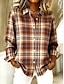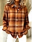 Γυναικεία Πουκάμισο Μπλούζα Γεωμετρικό Καρό Ριγέ Κομψό Βίντατζ Τροπικό Μακρυμάνικο Κολάρο Πουκαμίσου Κανονικά μπλουζάκια Δουλειά Στάμπα Ανοικτό Καφέ Πορτοκαλί Καφέ Φθινόπωρο Χειμώνας