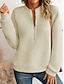 γυναικεία φούτερ με φερμουάρ πουλόβερ αθλητικά βασική μονόχρωμη υφή street casual v λαιμόκοψη μισό φερμουάρ τέταρτο φερμουάρ μακρύ μανίκι λευκό φθινόπωρο & χειμώνας