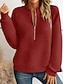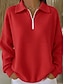 Γυναικείο T shirt Μακρυμάνικο Quarter Zip Μακρυμάνικο Casual Zip Up Sweatshirt Sweatshirt Pullover Αθλητικό Βασικό Κοκκώδης Waffle Street V Neck Half Zip Μαύρο Άσπρο Κόκκινο Μπλε Γκρι Φθινόπωρο