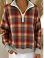 Γυναικεία Φούτερ πουλόβερ Καρό Καθημερινό Μακρυμάνικο Μισό φερμουάρ Κανονικά μπλουζάκια Καθημερινή Ένδυση Causal Αθλητικά Καφέ Φθινόπωρο