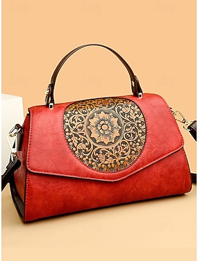 vintage φλοράλ χαραγμένη τσάντα από ψεύτικο δέρμα – γυναικεία ρετρό τσάντα χιαστί με επάνω λαβή για casual και επίσημες περιστάσεις κρασί μαύρο λευκό