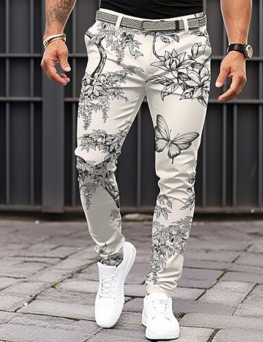 Ανδρικά Φλοράλ Παντελόνι επίσημο Μεσαία Μέση Καθημερινό Διακοπές Καθημερινή Ένδυση Φερμουάρ Τσέπη Καλοκαίρι Άνοιξη Φθινόπωρο 3D εκτύπωση Λευκό